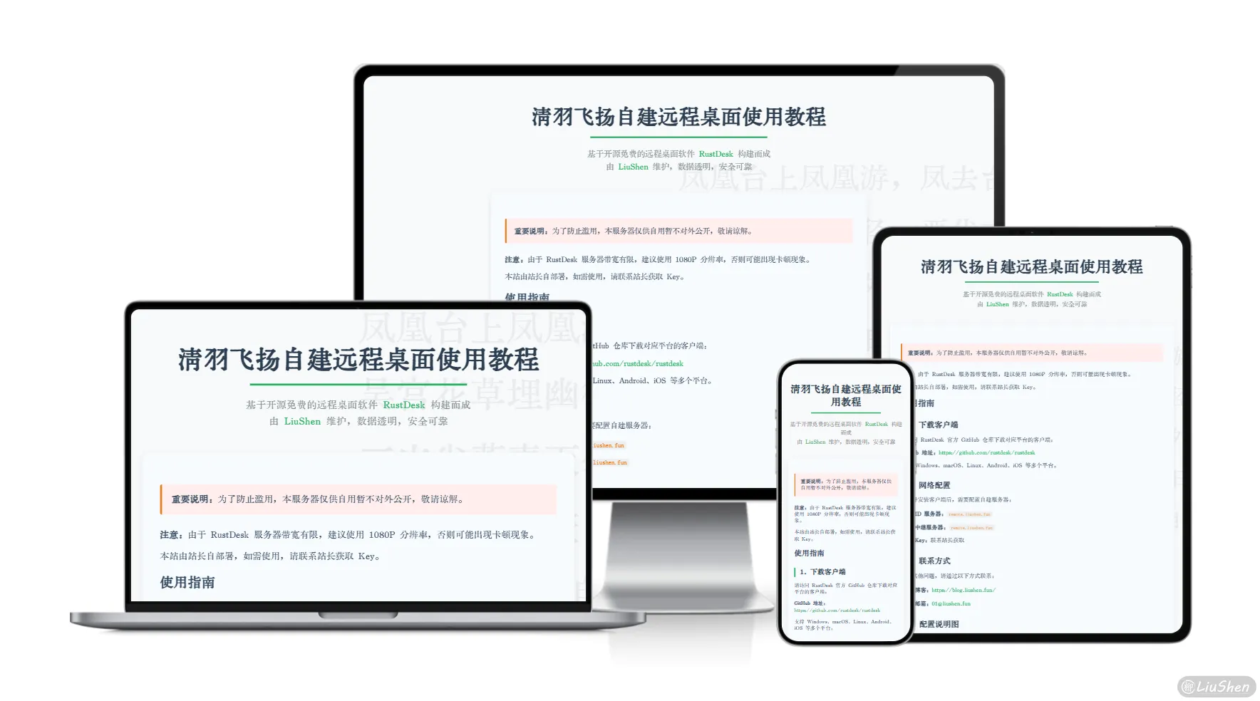清羽远控 🔥 清羽飞扬自建RustDesk远控平台,实现远程控制和管理,方便日常操作。